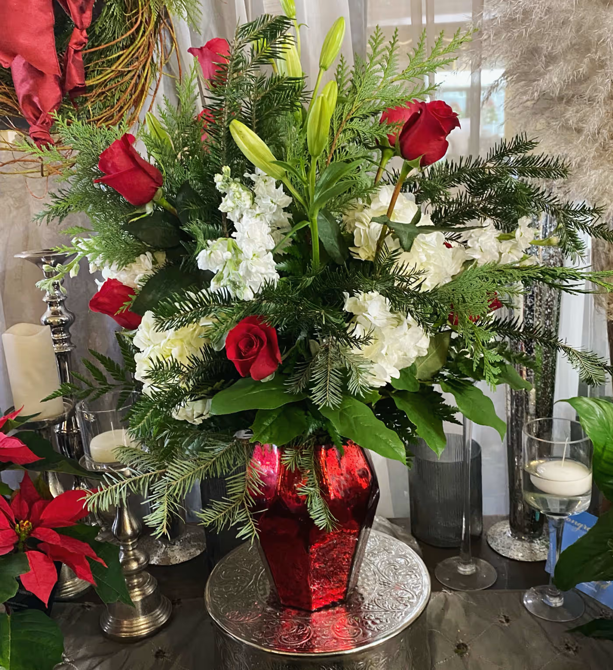 This arrangement is a great way to show someone you care, or provide a pop of holiday joy to your home decor.
